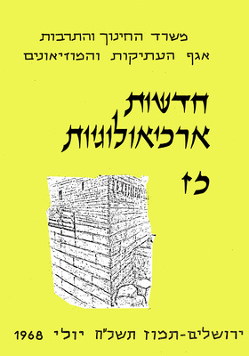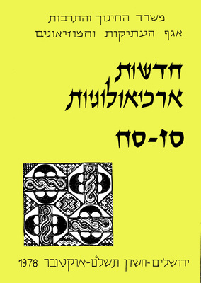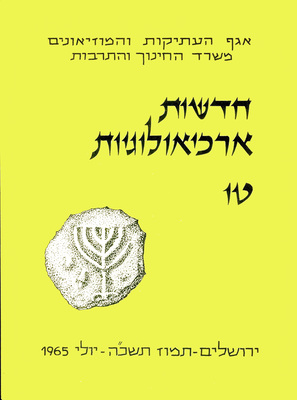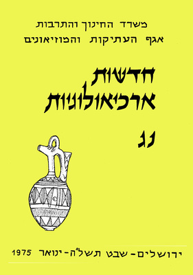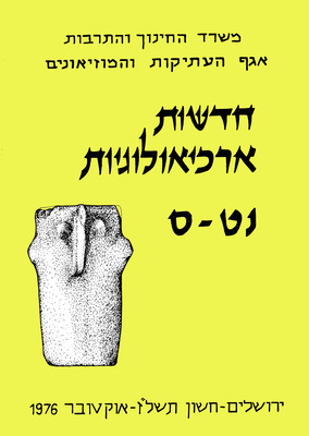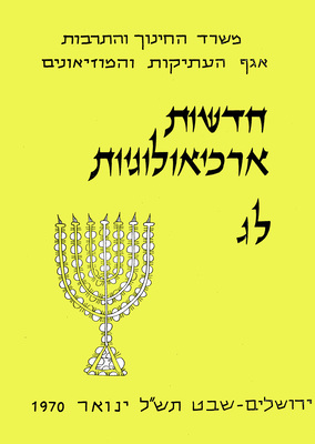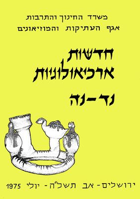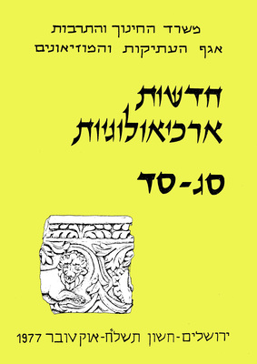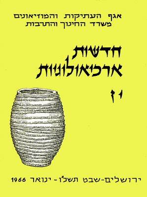Hadashot Arkheologiyot (Hebrew Series) has been published in print since 1961 by the Israel Department of Antiquities and Museums (IDAM) and since 1990, by the Israel Antiquities Authority (IAA). The English version of this journal—Excavations and Surveys in Israel—has been published since 1982. The journal contains preliminary reports of excavations and surveys in Israel, as well as archaeological finds recorded during inspection activities.